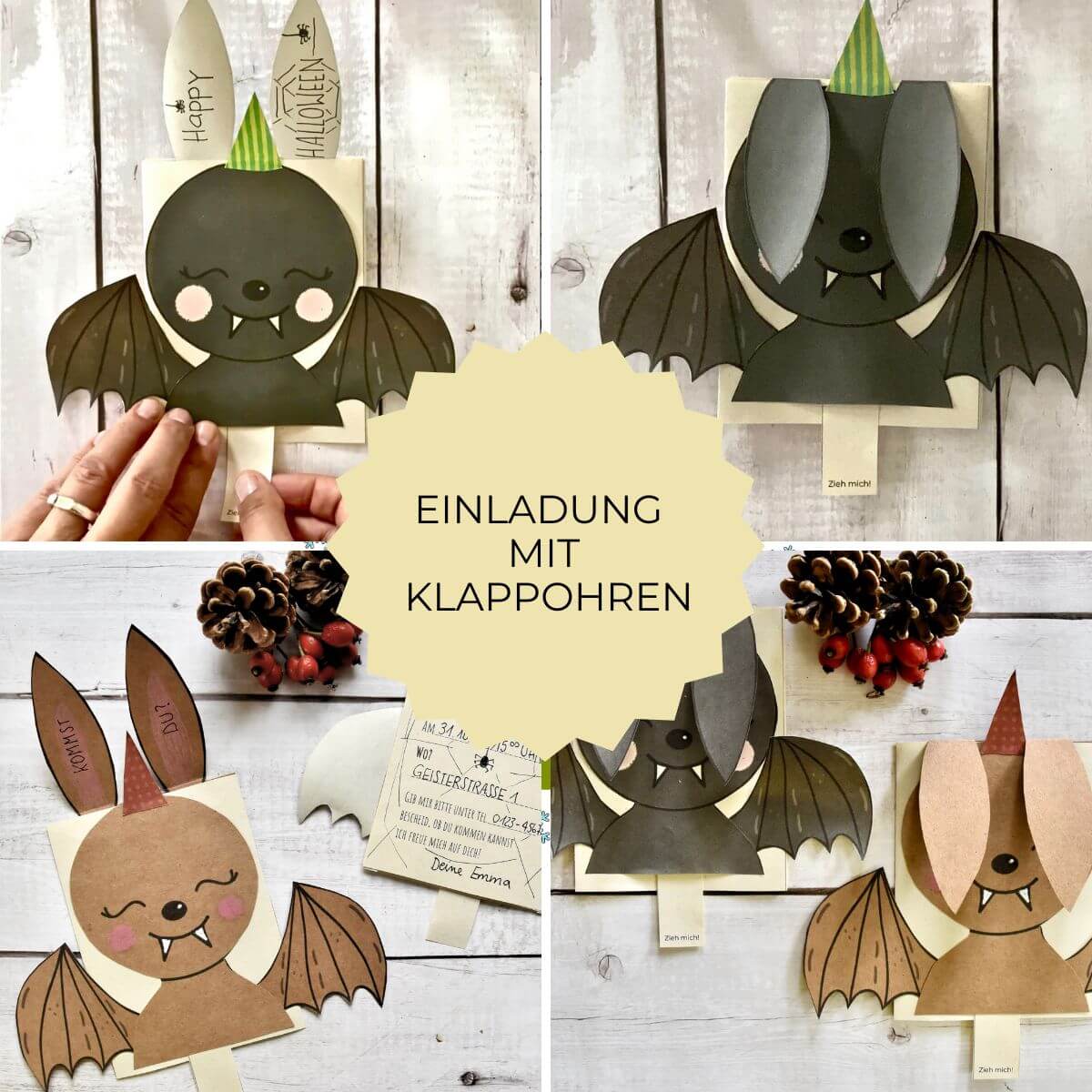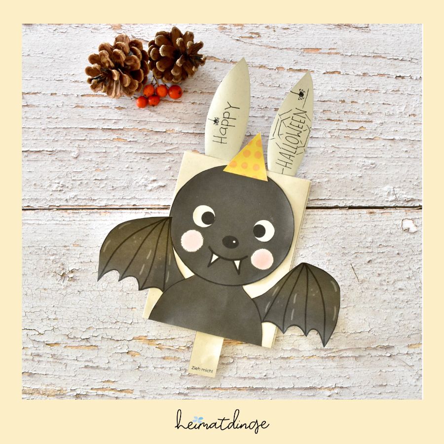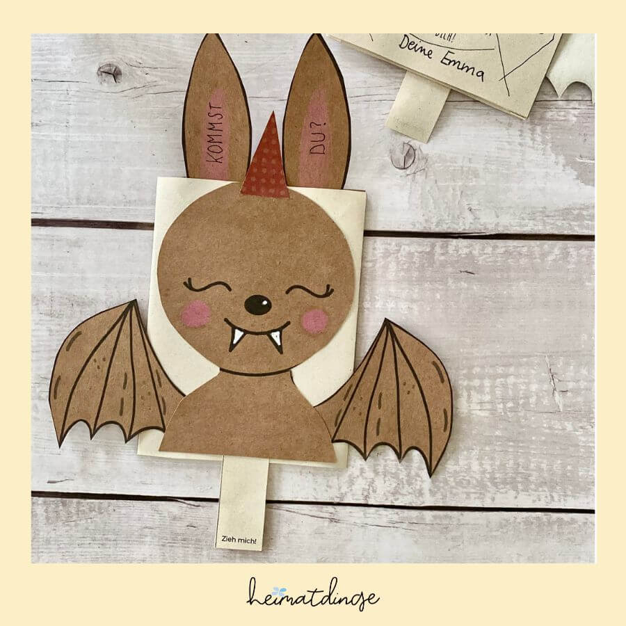 Lade die digitale Druckvorlage für diese originelle Fledermaus Einladung jetzt herunter und lege mit dem Basteln gleich los.