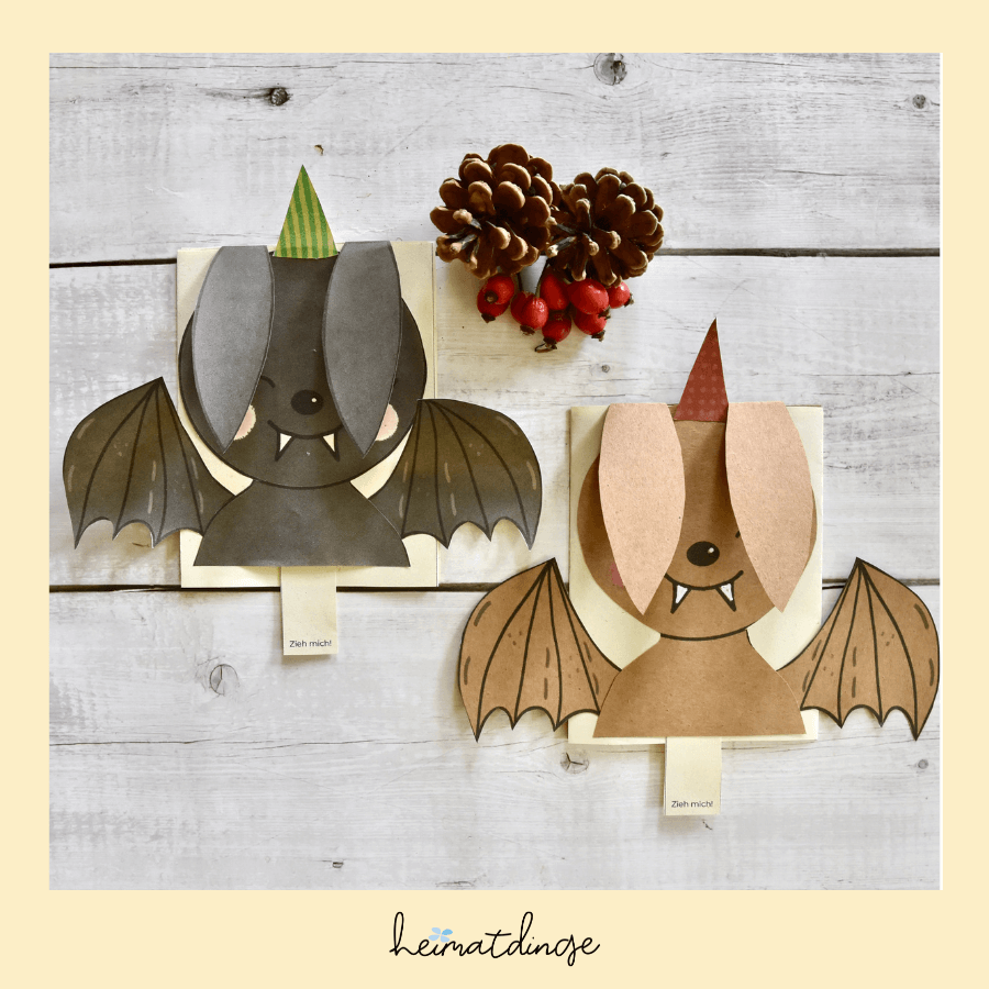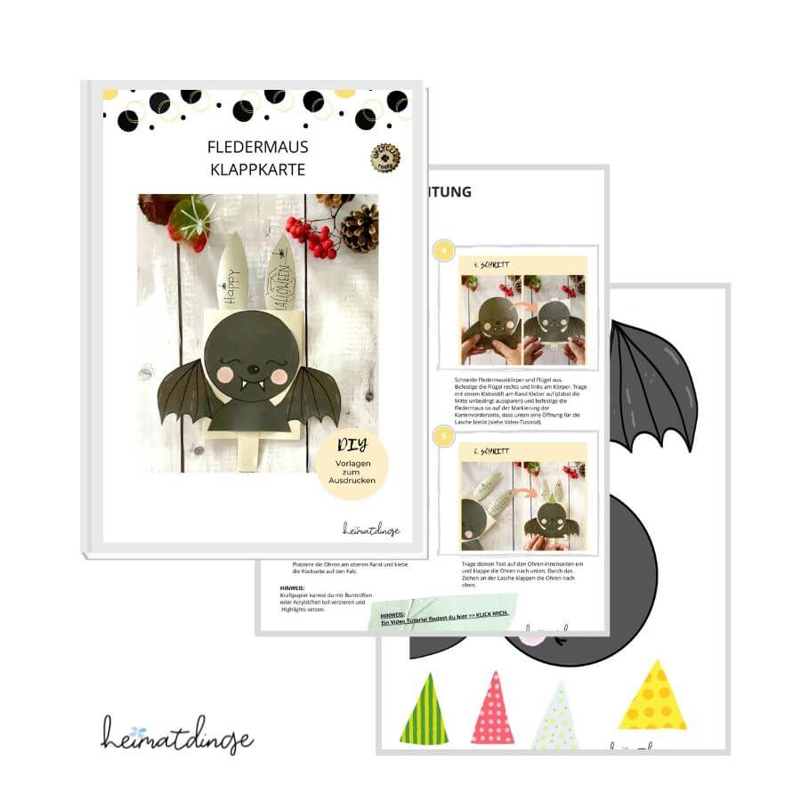 - PDF-Vorlage „Fledermaus Klappkarte“, Bastelset zum Ausdrucken