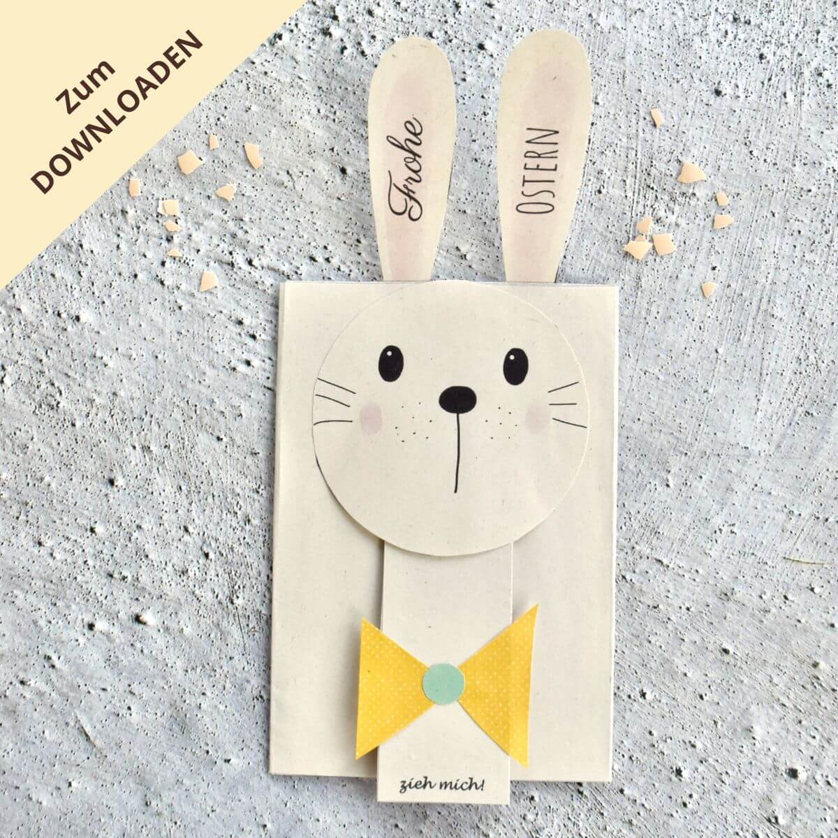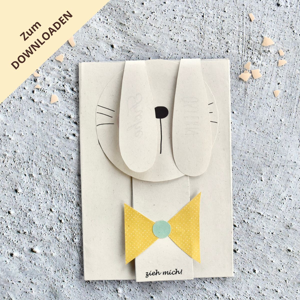 Mit dieser ganz besonderen Osterhasen Osterkarte kannst du deine Herzensmenschen toll überraschen. Ein Mal am Hals gezogen, schwupps klappen die Hasenohren auf und der Kartentext wird sichtbar. Und das Geniale daran ist: diese DIY Osterkarte zu basteln macht nicht nur Spaß. Du schonst auch den Geldbeutel damit. Denn du kannst die PDF-Vorlagen beliebig oft ausdrucken und mit deinem persönlichen Grußtext auf der Rückseite individuell für deine Lieblingsmenschen anpassen.