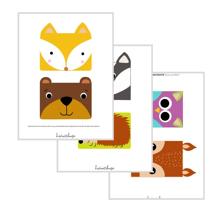 - 6 TIERMOTIVE für die Schatzkiste (6er Eierkartons)